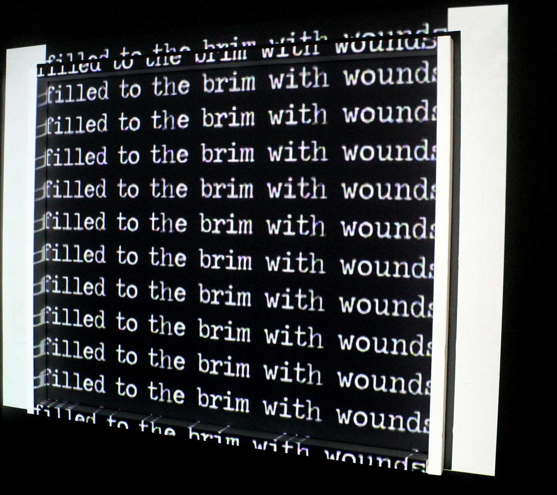 filled to the brim with wounds text animation on wood frame 2012 Share this: Click to share on Facebook (Opens in new window) Facebook Click to share on X (Opens in new window) X Like Loading...